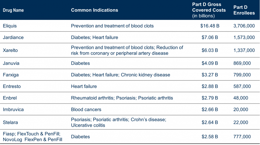 Approximately 8,247,000 people with Part D covered used these drugs to treat a variety of conditions (cardiovascular, diabetes, autoimmune diseases, cancer), accounting for $50.5 Billion in total Part D drug costs, or 20% of Part D gross covered prescription drug costs between June 1, 2022, and May 31, 2023.