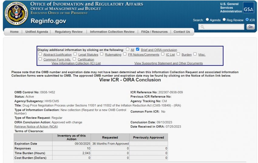 The public also has a chance to submit data on therapeutic alternatives or information for the selected drugs using the public portal by today, October 2nd. After submitting an email request to receive a public submission form, CMS sends an email indicating, “Once you begin to answer the questions, you CANNOT SAVE your work for that selected drug. You will need to complete all information you would like to share for each selected drug in one sitting. Once you submit a response for one selected drug, you can use the same link to return and submit responses for other selected drugs (up to 10), if you would like.”